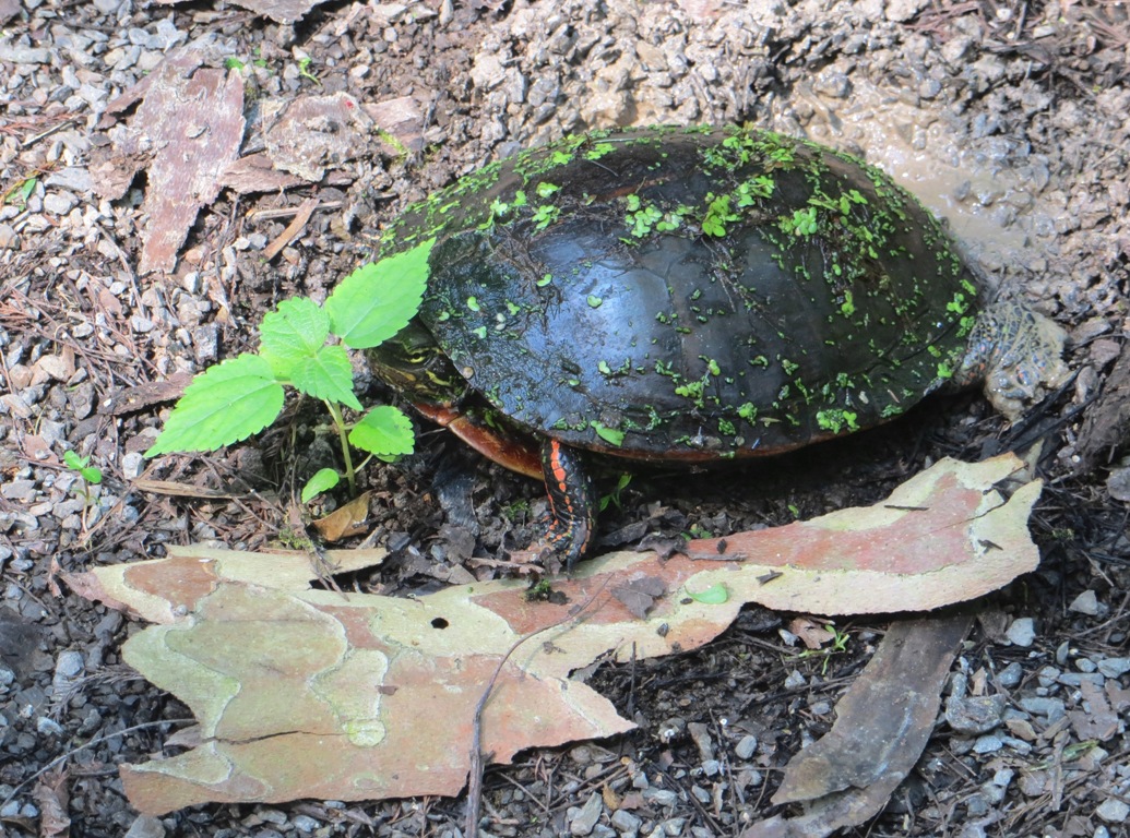 One day while I was out walking, I came upon this turtle sitting in the middle of the path. He seemed quite confident that I couldn’t see him hiding there behind that little piece of grass.
