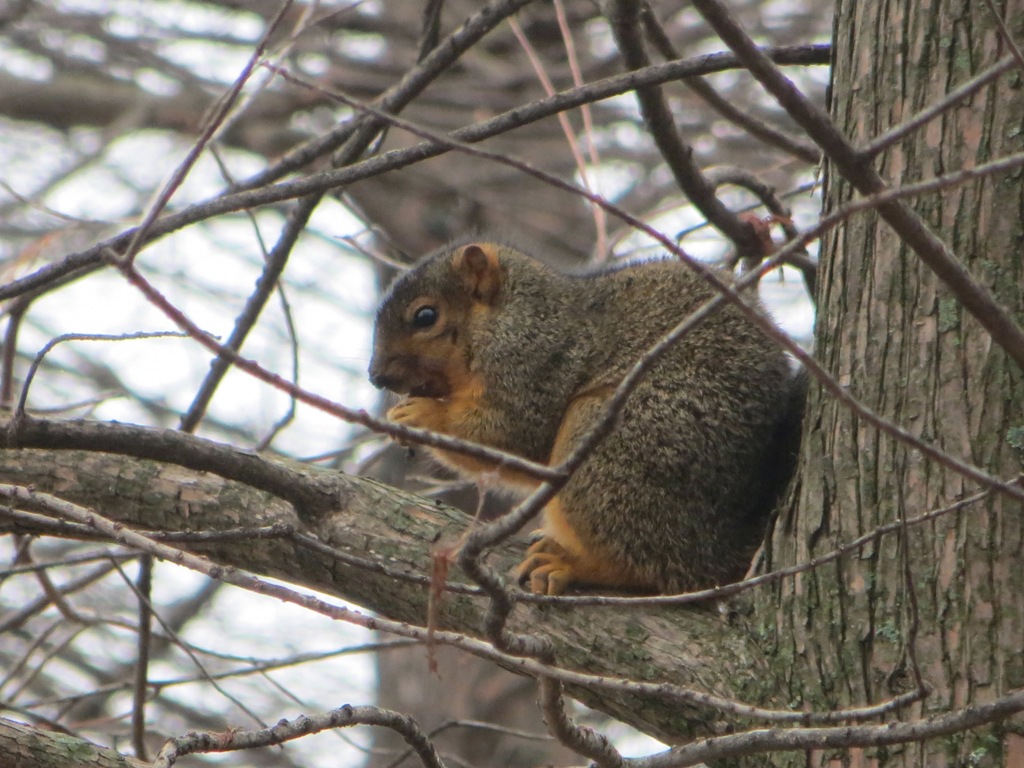 Squirrels are popular today! Yours found a quiet little corner to enjoy its snack.