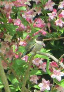 Hummingbird on a Weigela shrub
