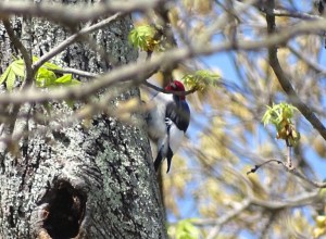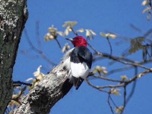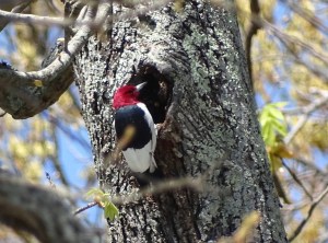 A Red-headed Woodpecker seen at Paris Landing State Park.  Though it was a flurry of activity, flying here and there, it always returned to the same cavity in a tree.  Its actions led me to believe that it was probably tending to a nest inside.  Eventually, it lighted near the cavity opening to  stand watch.