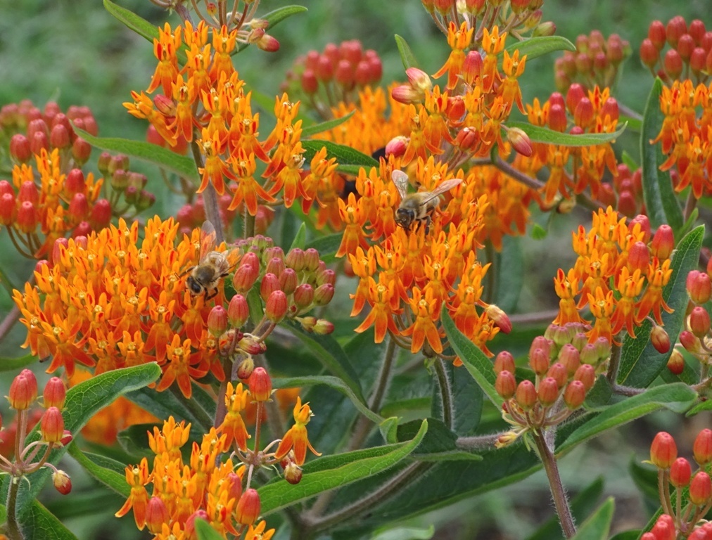 Honey bees on Orange butterfly weed