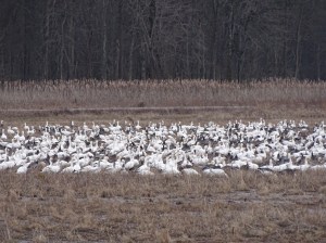 Snow Geese foraging on the ground 2