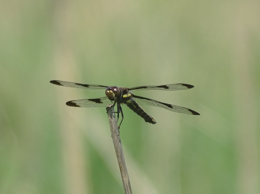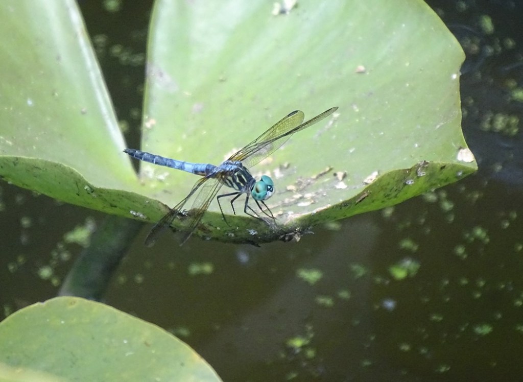 Dragonflies use a variety of perches on which to land, and then utilize their large eyes to keep a lookout for both prey and predators. By choosing a good perch, they have the advantage of resting while being on the hunt. They are also able to use several techniques to regulate their body temperature from this resting position.