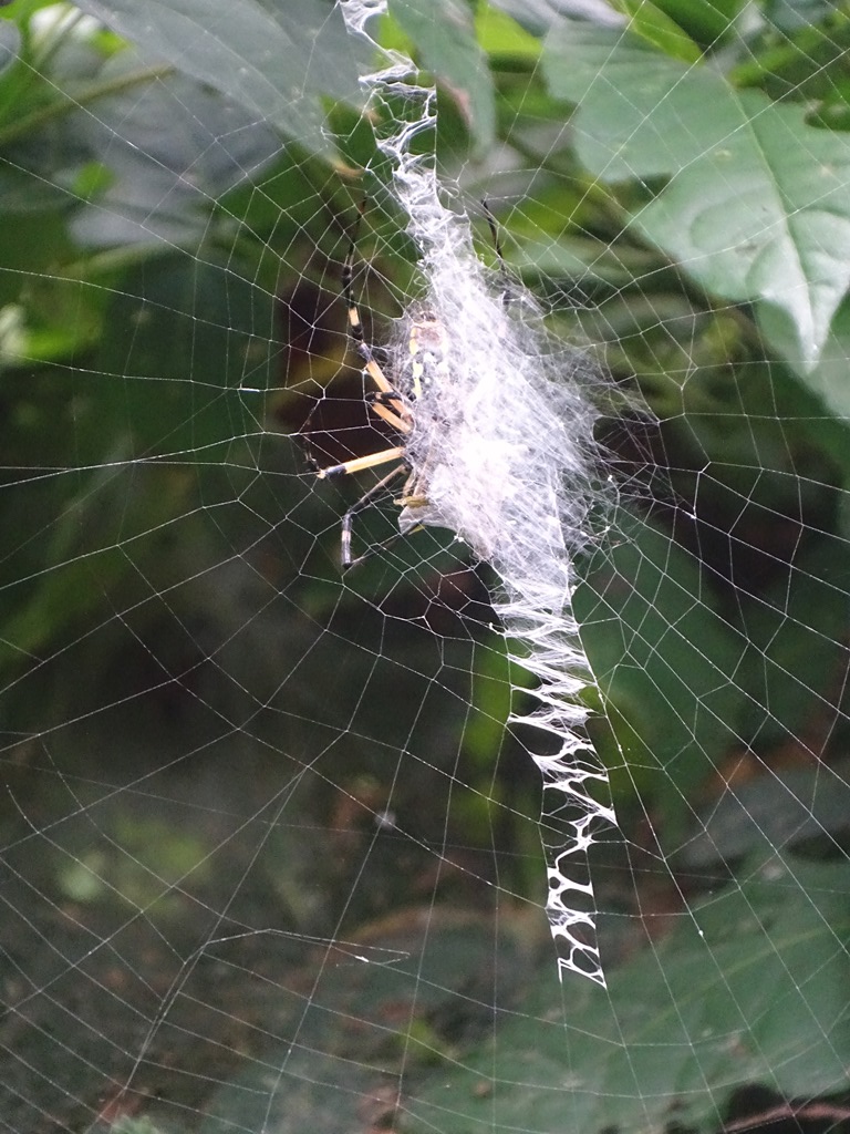 One of the webs caught my attention because of the way the spider was vibrating it back and forth. This is called “web flexing” and is thought to be a defense from predators or a way to entangle prey. Whatever the reason, the action is enough to make one dizzy if watched for very long.
