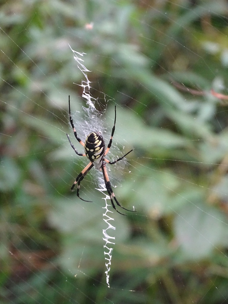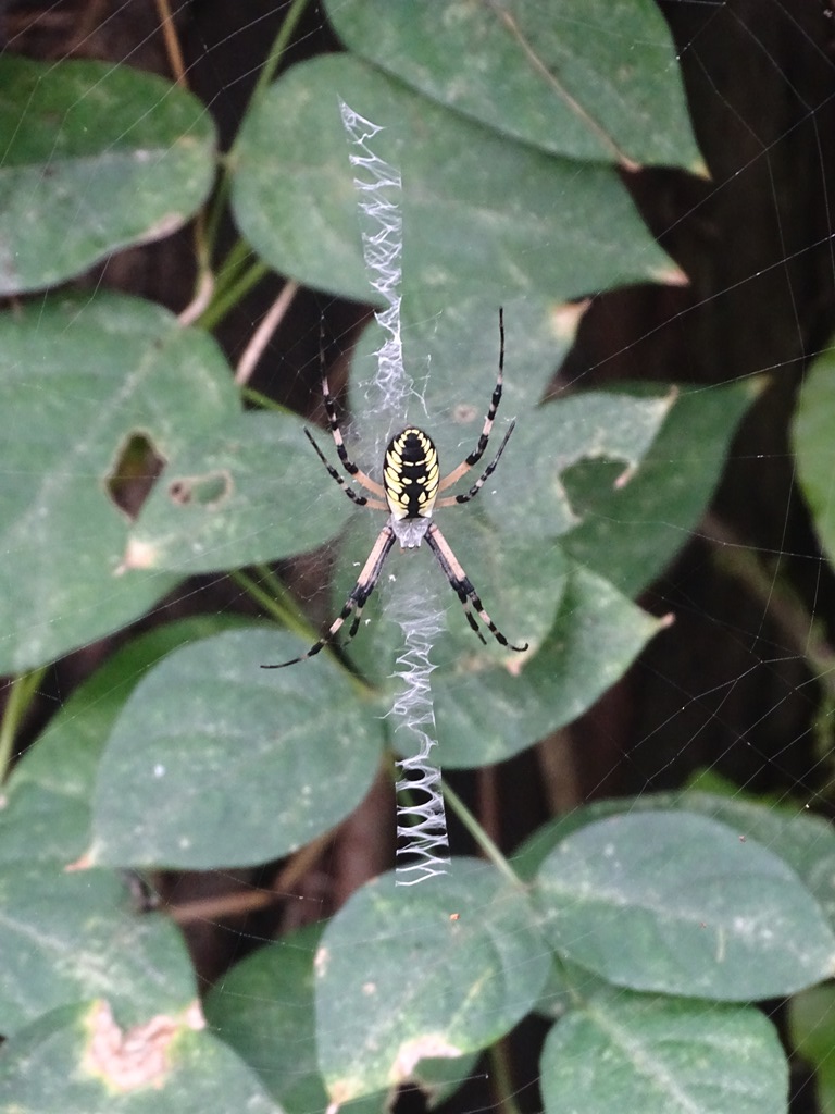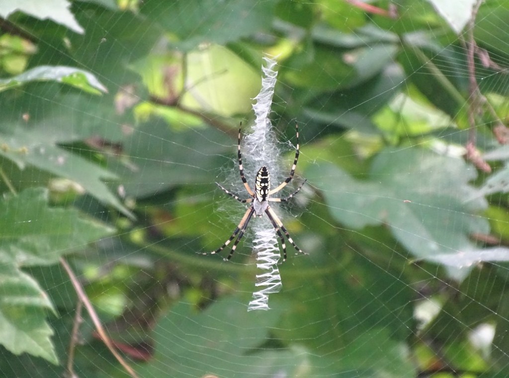There seem to be a number of Black and Yellow Garden Spiders making their home among the vegetation around the boardwalk at the lake. These large-orb spiders are also known as the “Writing Spider”, “Zig-Zag Spider” or “Zipper Spider” because of the heavy white silk decorations which are spun into the center of their elaborate webs. The decorations resemble writing, and differ from web to web.