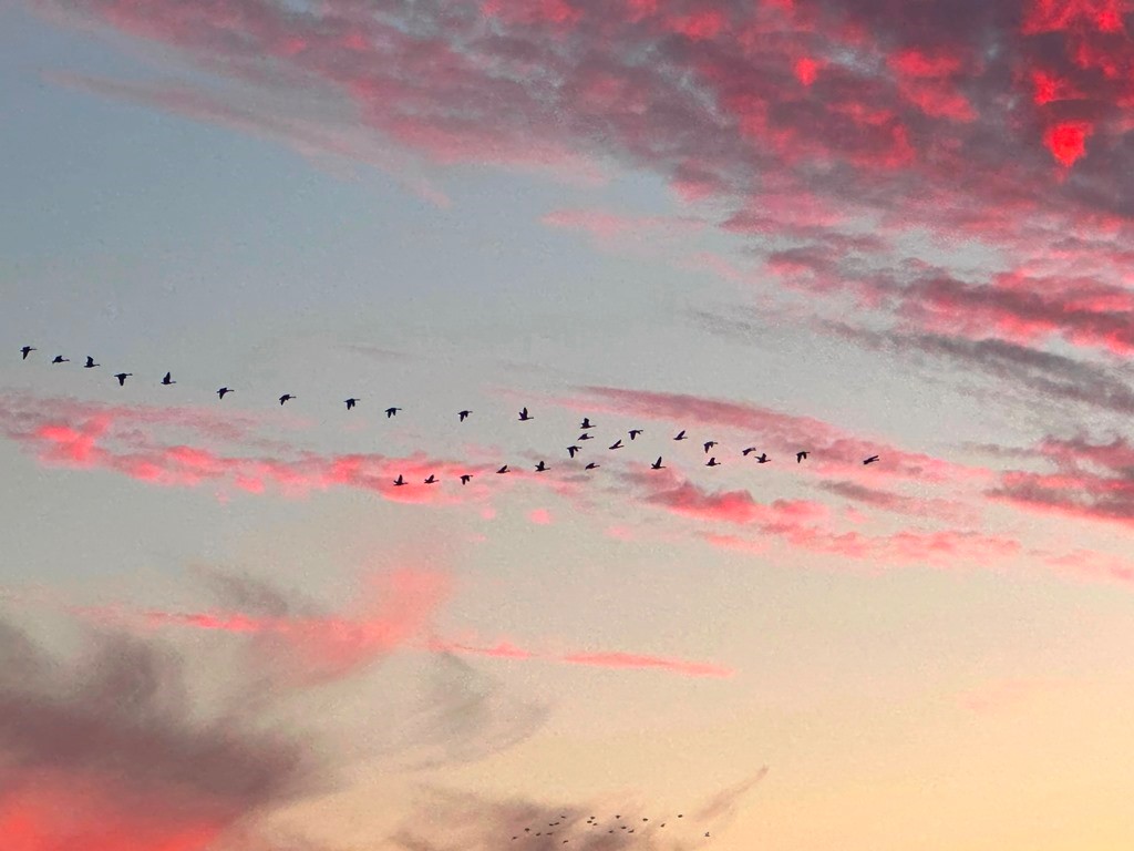I am fortunate to have a house that faces west and nothing that blocks the view. I’ve noticed that the geese go one direction in the early morning and the other direction right before sundown. I don’t think they pay any attention to the sunset. They seem in a hurry to get to their nighttime resting place.