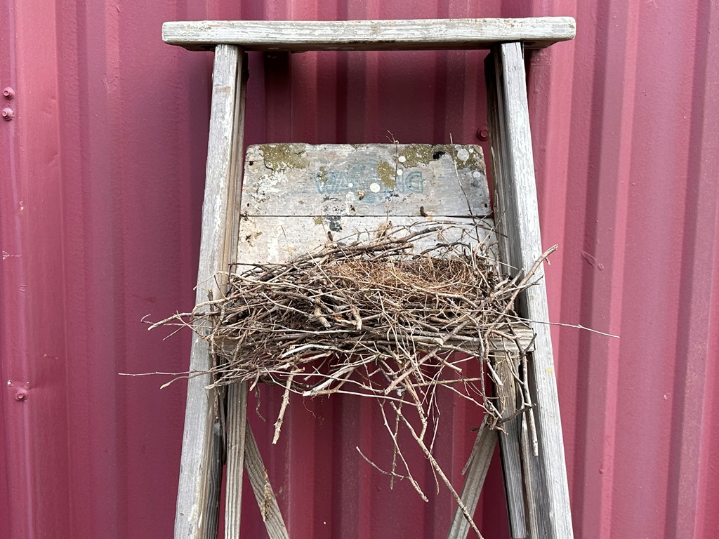 2. What a delight to find each of them, large and small. Doesn’t the eagle look content in that nest? Robins seem to find the darnedest places to nest and the elbow of my front porch light has been a favorite for years. Now, every Spring I actually block the elbow as the nest is directly over the mailbox and blocks getting out of the front door. I got a smile from seeing the nest on the ladder … any port in a storm! I also like the Walt Whitman quote which is perfect for these photos.