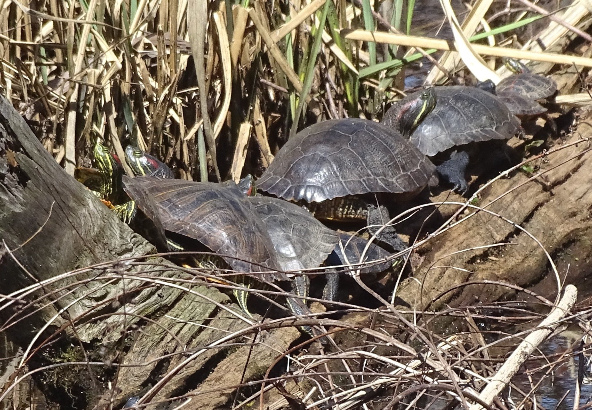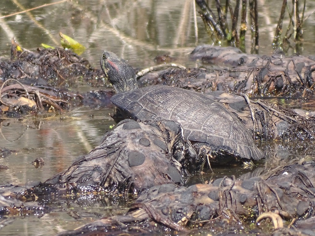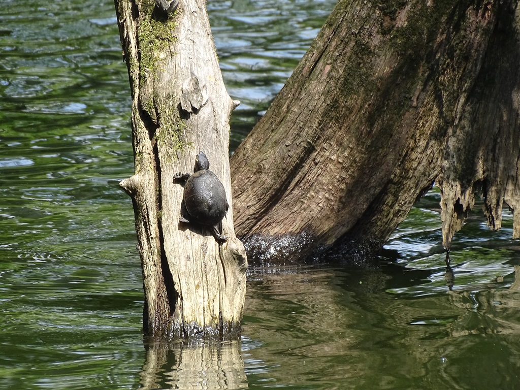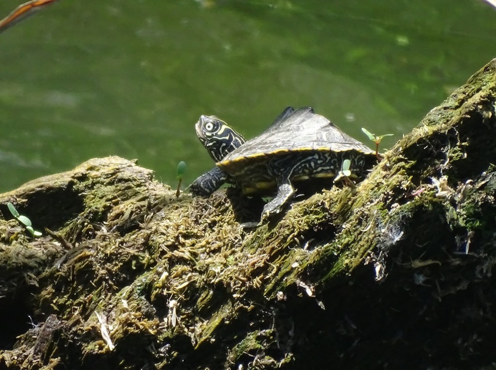 Who says a turtle can’t climb a tree? This little fellow was determined, and up he went, climbing higher and higher. I imagine he was also seeking a sunny spot to relax.