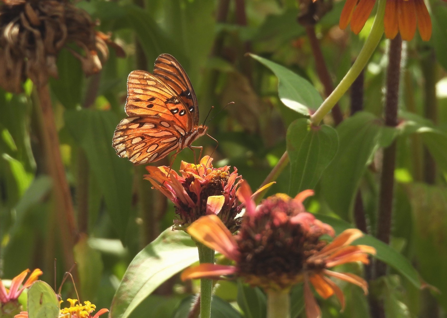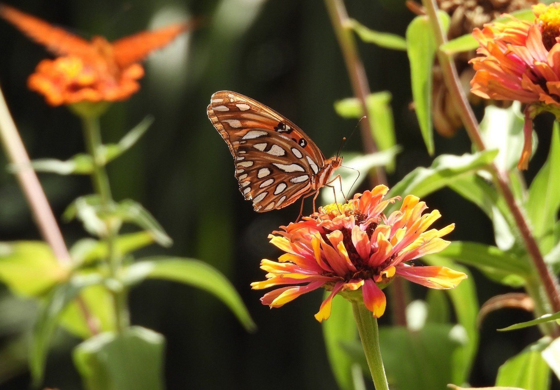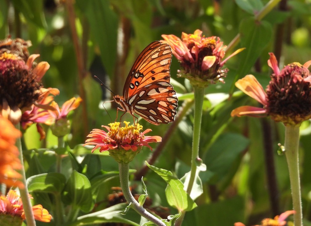 The Gulf Fritillary, also known as the longwing or passion butterfly, is a stunning and delicate insect. Its vibrant orange wings are accented with black streaks on top, while the undersides display white and brown spots. Their lives are brief, lasting only a few weeks. During this period, they spend their days feasting on nectar as one of their major sources of energy.