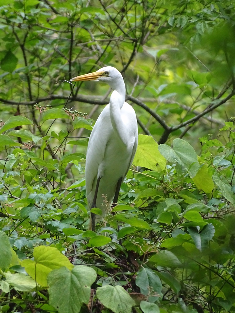 The barred owl, with intent focus, glided over the flooded forest floor, stretching out its talons to swiftly snatch up its prey. Then it landed on a nearby tree branch to examine its prize. Carefully, it extricated its catch from collected debris. Aware of my presence, the owl took flight deeper into the woods to savor its snack in solitude.