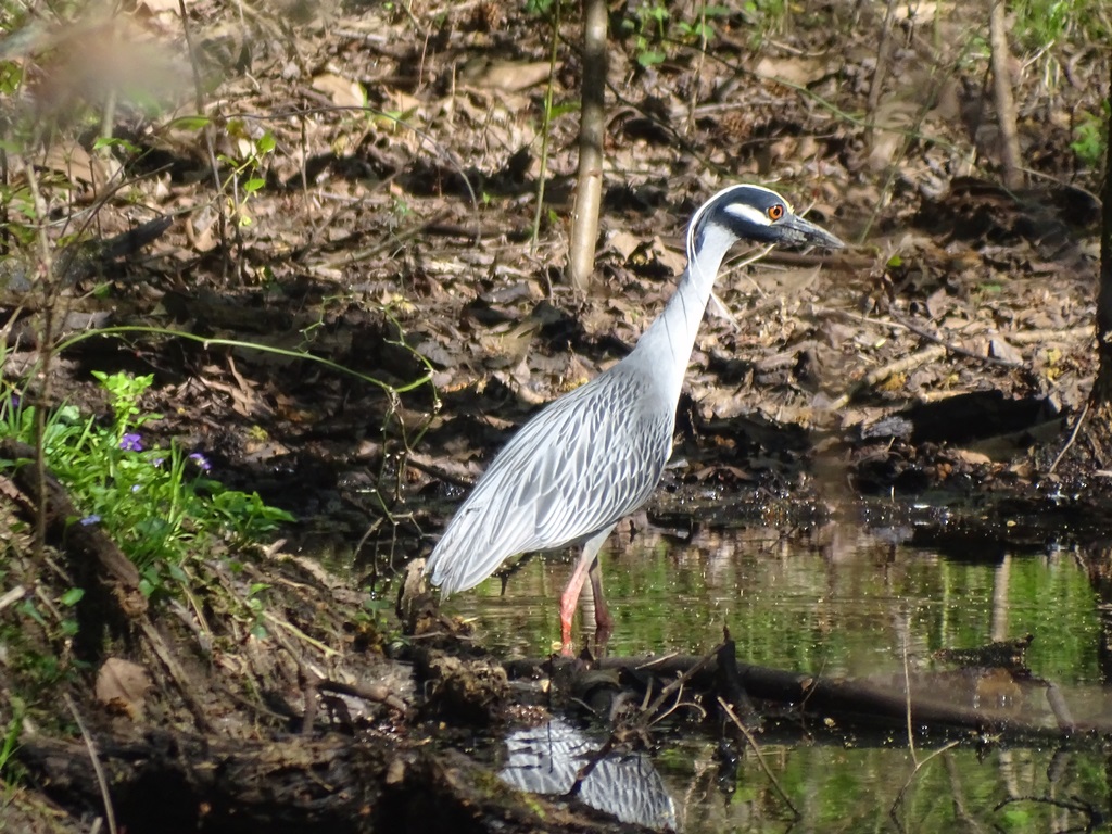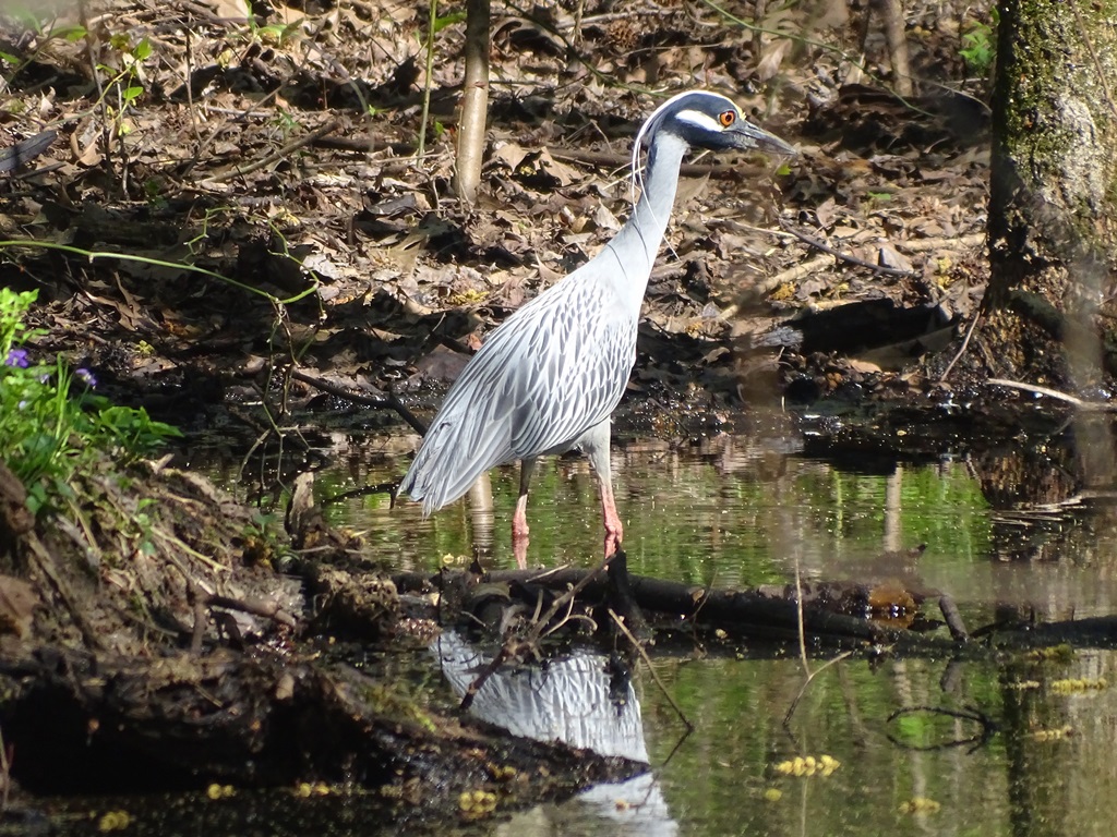 In search of crawfish, insects and a variety of aquatic invertebrates, this heron quietly hunted in a swampy, forested area of the refuge.