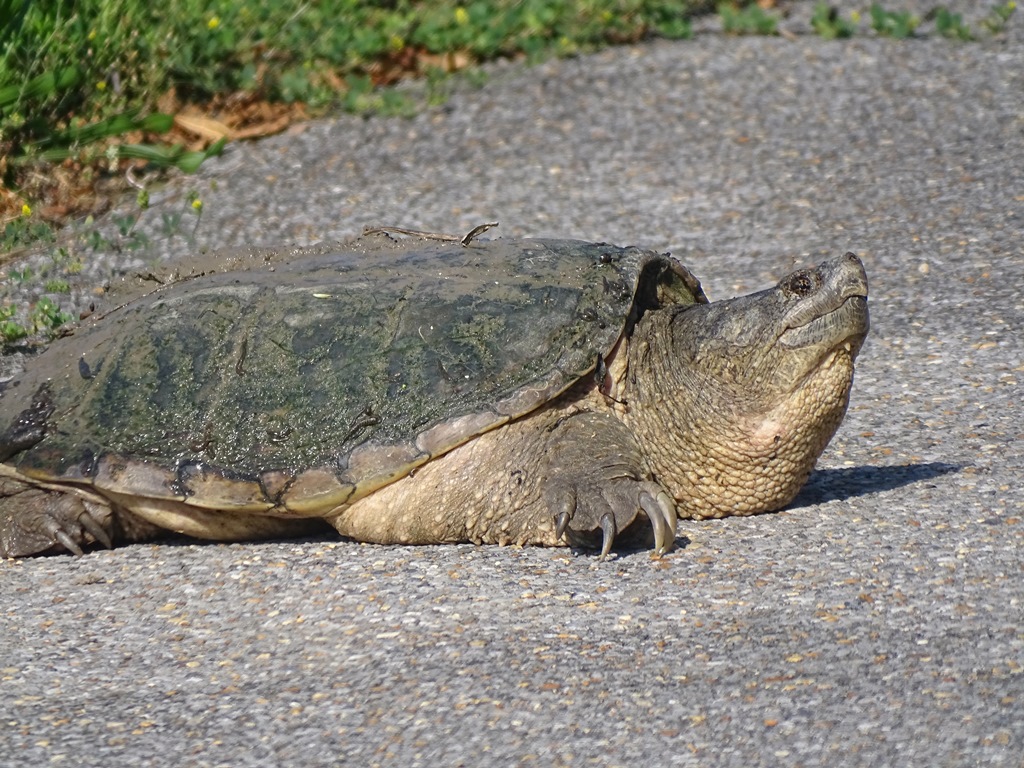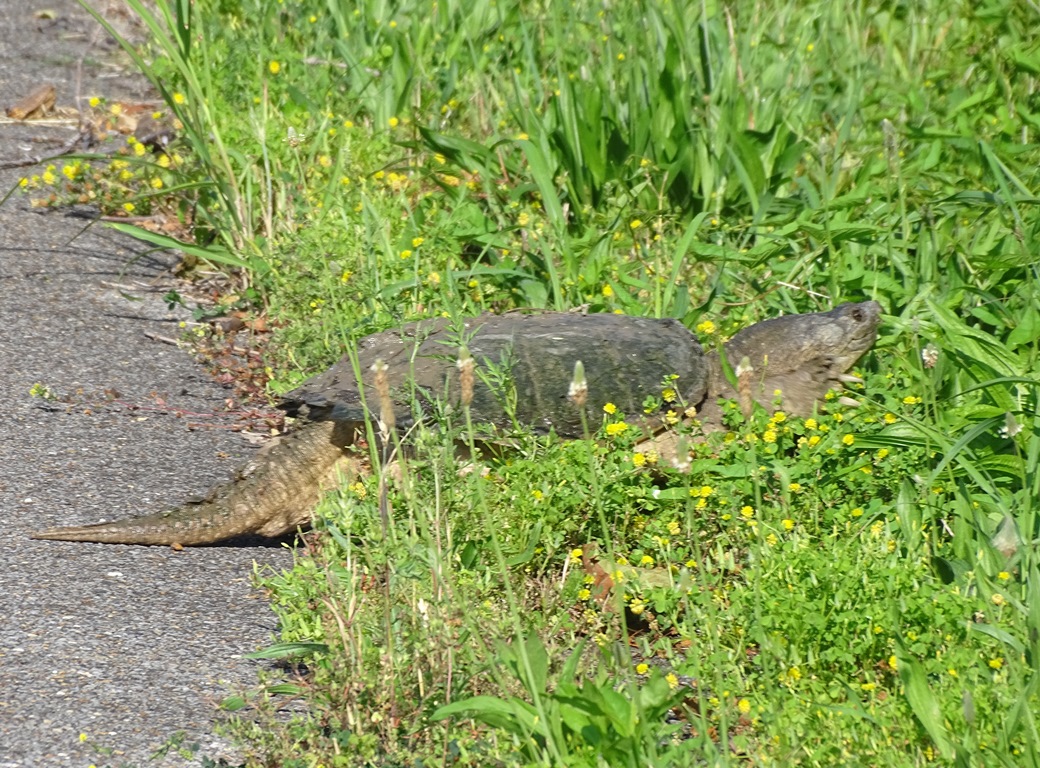 This past summer, on two different occasions, we came upon snapping turtles as they cautiously emerged from the cover of green grass and made the trek from one side of the country road to the other.