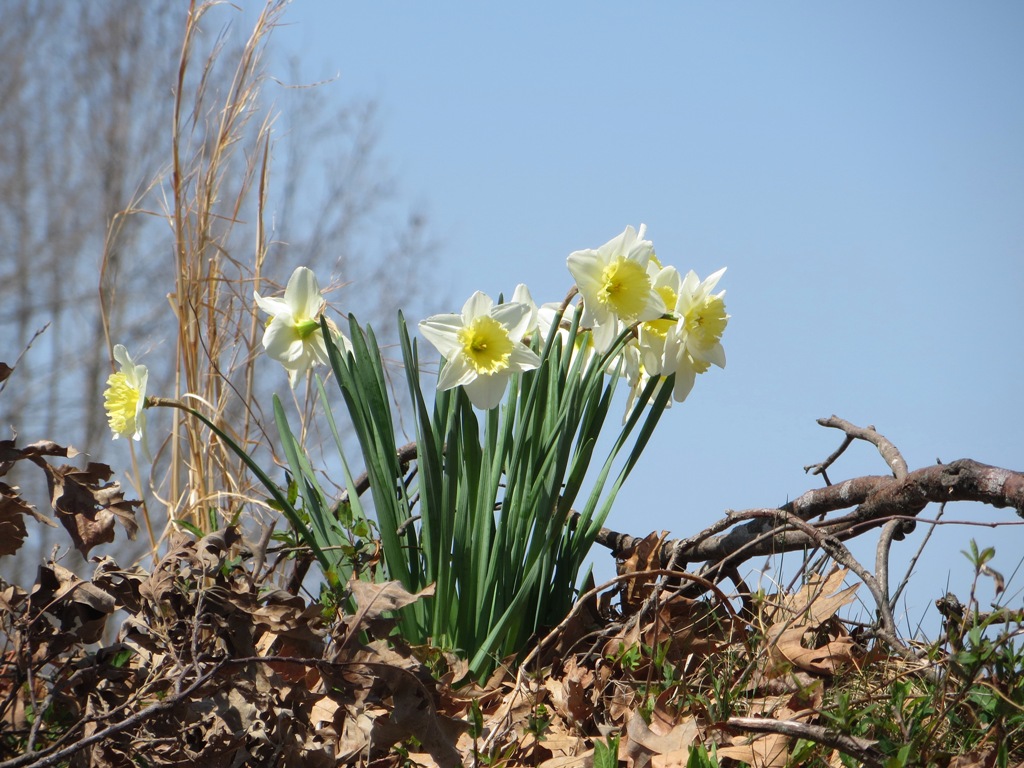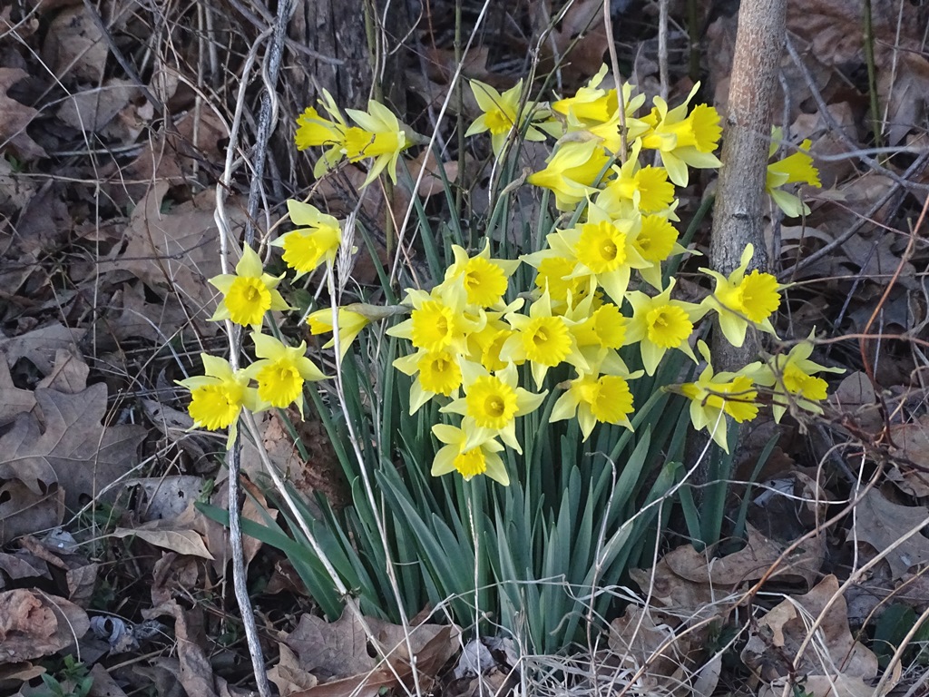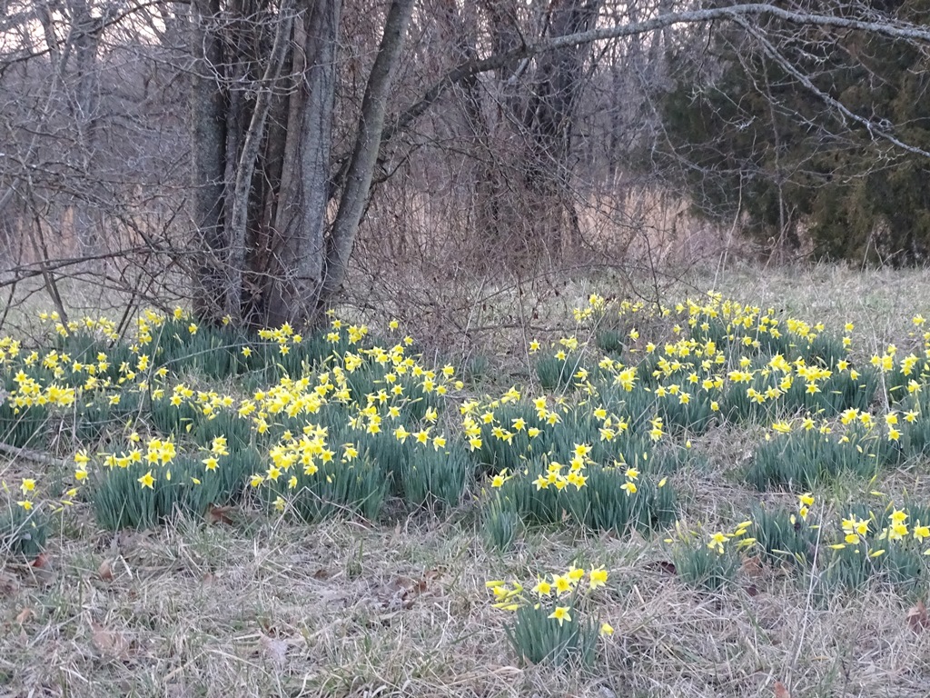 One day earlier this week the sun was shining, the temperature was mild, and it was a perfect occasion for an afternoon stroll. I spotted a number of wild daffodils in bloom along our country road. Nothing brightens the disposition like seeing their little yellow heads bobbing in the wind.
