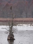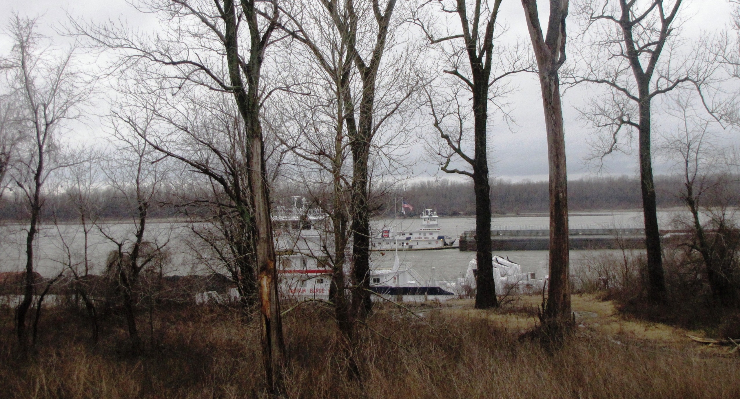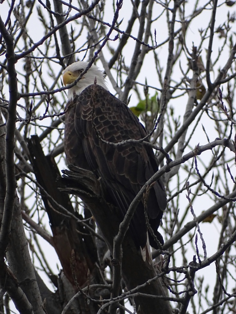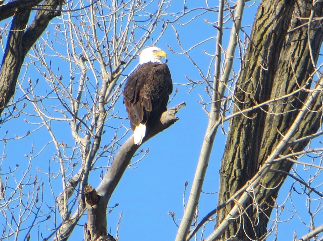 We were excited to see a young eaglet sitting on the edge of a nest in a tree along the Mississippi River. A second eaglet could be seen lower in the nest, stretching its wings. Eventually one of the parents came back to the tree and sat in the shadow of a branch above them, dutifully keeping watch before settling back into the nest.