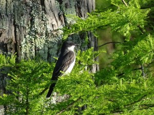 and the larger gray and white Eastern Kingbird on the lookout for flying insects.