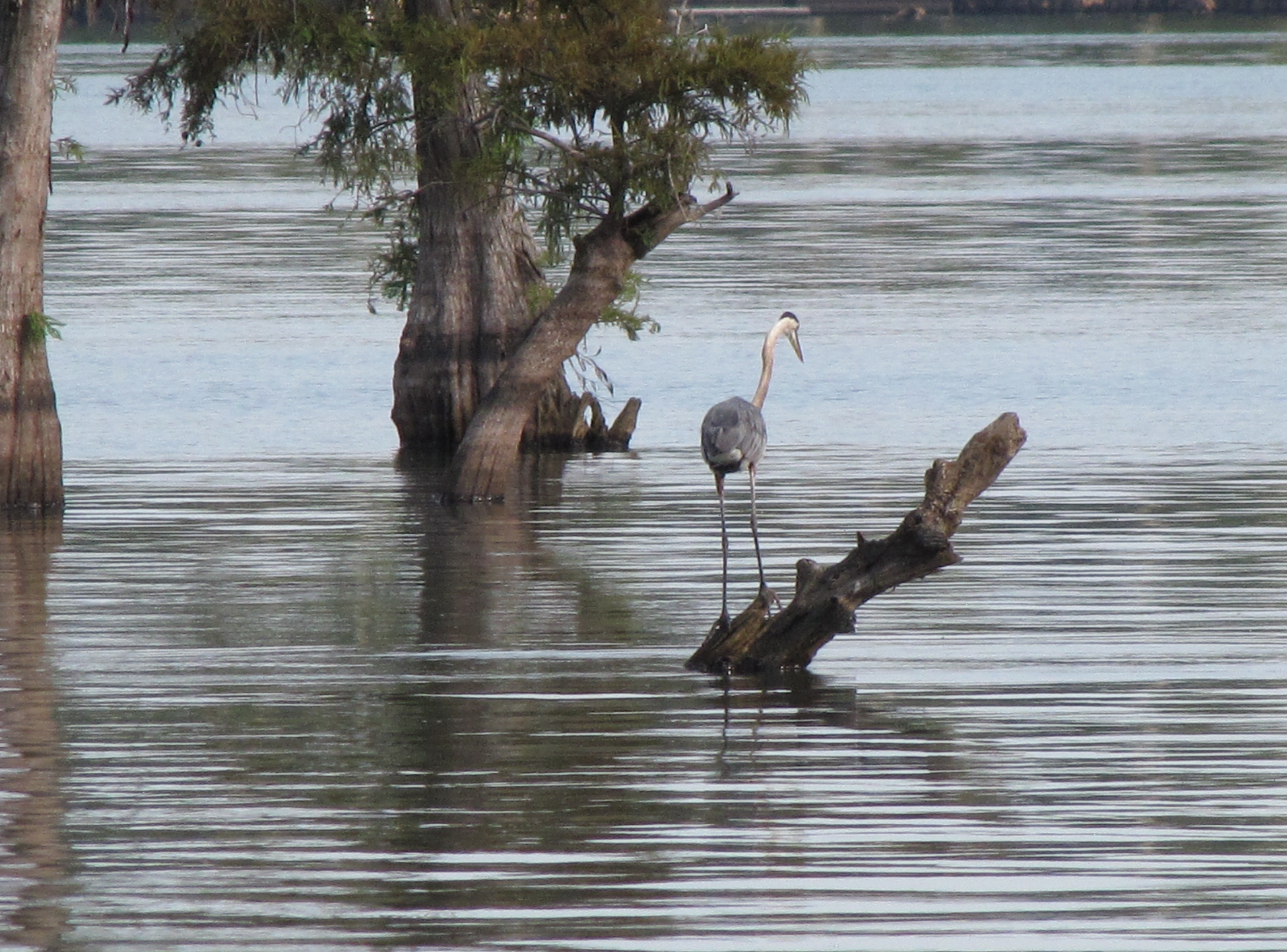 We spotted this Great Blue Heron along the Reelfoot Lake spillway. Its mind was singly focused on one thing — catching lunch — which it promptly did, and swallowed whole.