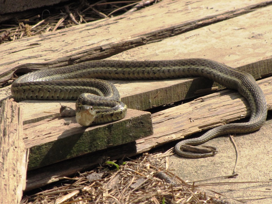 Garter Snake June 17, 2013June 26, 2013 / Rebecca / Leave a comment This snake recently found its way into our yard. Our dogs were pretty inhospitable towards it, and eventually, it slithered away. I love my dogs.
