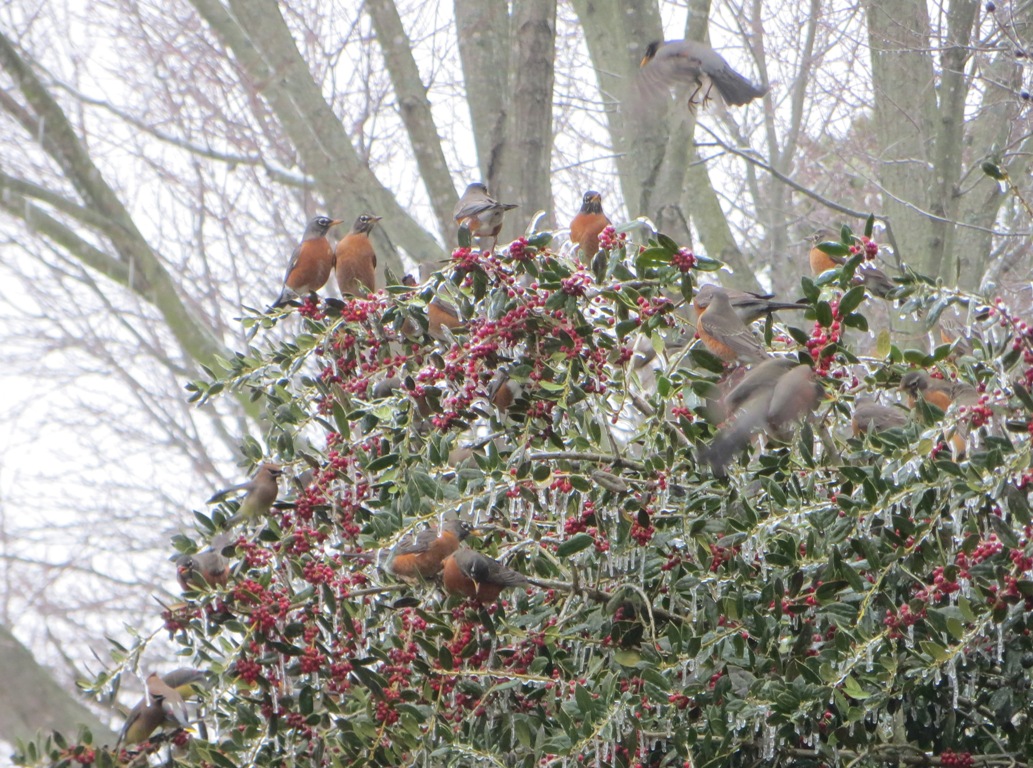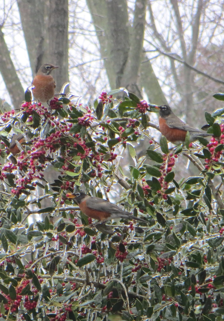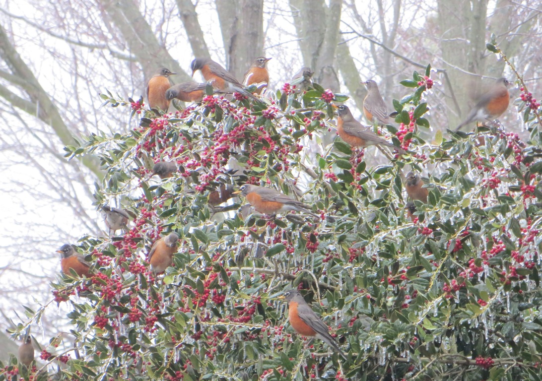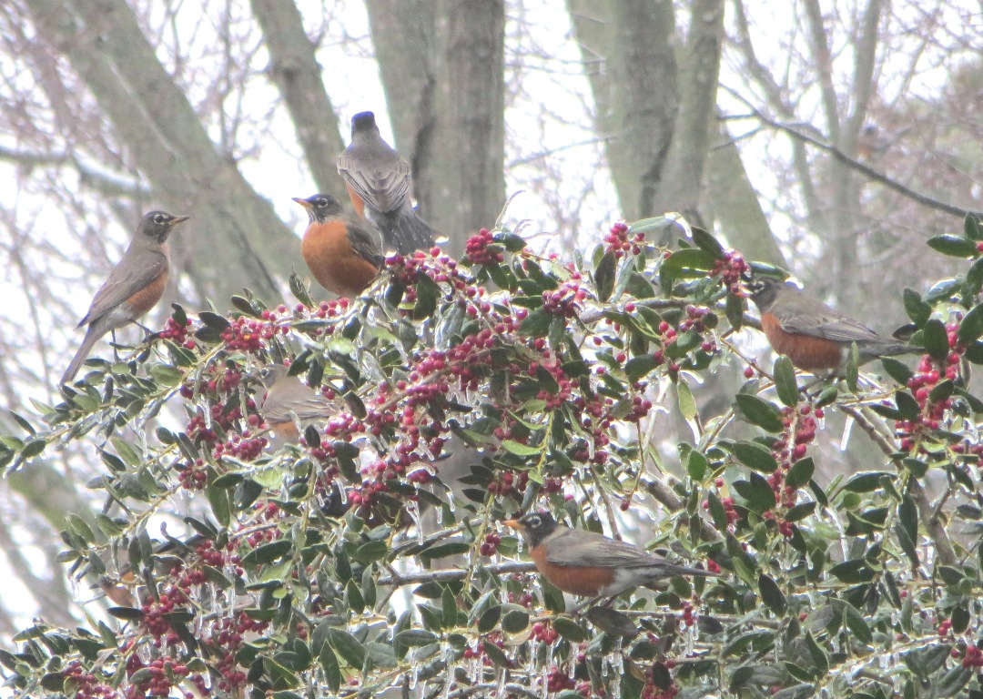 The Blue Jays started quite a loud squabble in my neighbor’s back yard. This robin, wanting no part of the falling-out, quickly cleared out of the way. She came flying across our back yard and found a branch up high in one of our pine trees to listen and wait out the commotion.