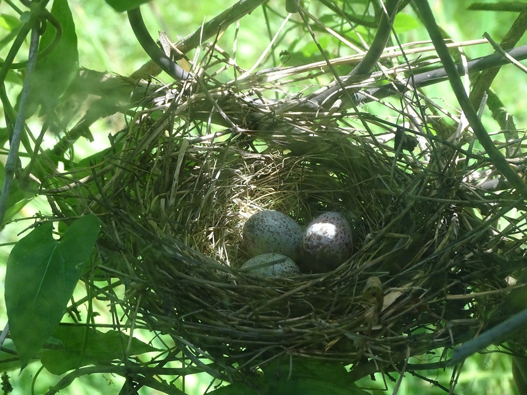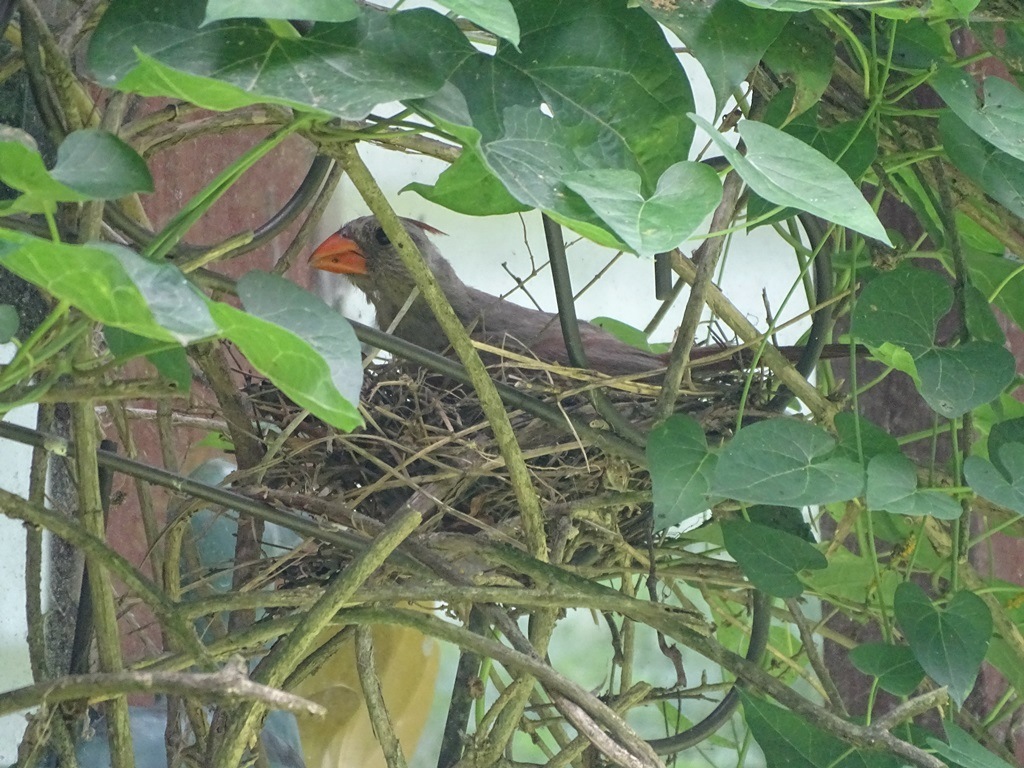 I’m pretty sure that I now know why the cardinal eggs disappeared from their nest at the end of the porch a couple of weeks ago.