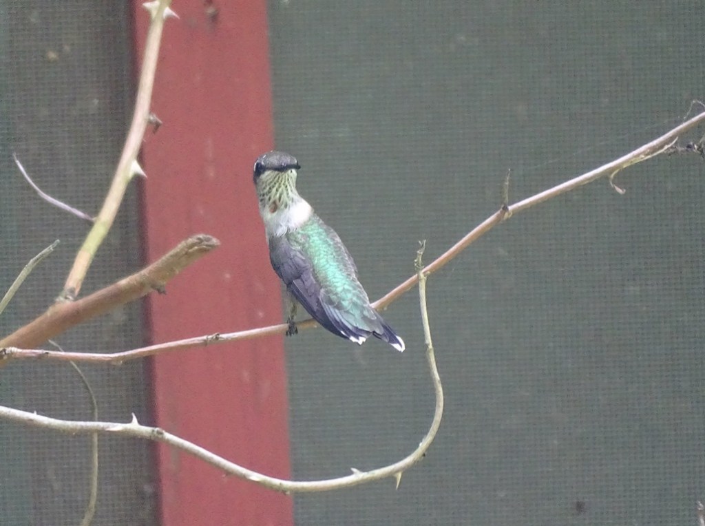 This turned out to be an unpopular decision with the hummingbirds, who lost their favorite branches to perch on and guard the nearby feeders. And I do miss having a front row seat from my rocker inside the screen porch. Now after getting a drink from the feeders, they tend to fly away to bushes further out in the yard. But still, the more I think about it, the more I know it was the right choice for the hummingbirds’ survival.