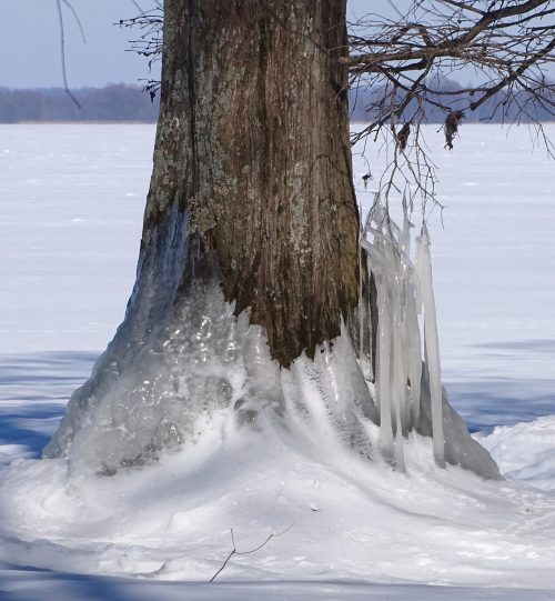 During the recent arctic blast, Reelfoot Lake froze over and ice formed around the base or foot of the Cypress trees which stand out in the water. This usually happens once or twice each winter, and is a beautiful gift of nature that shouldn’t be missed.