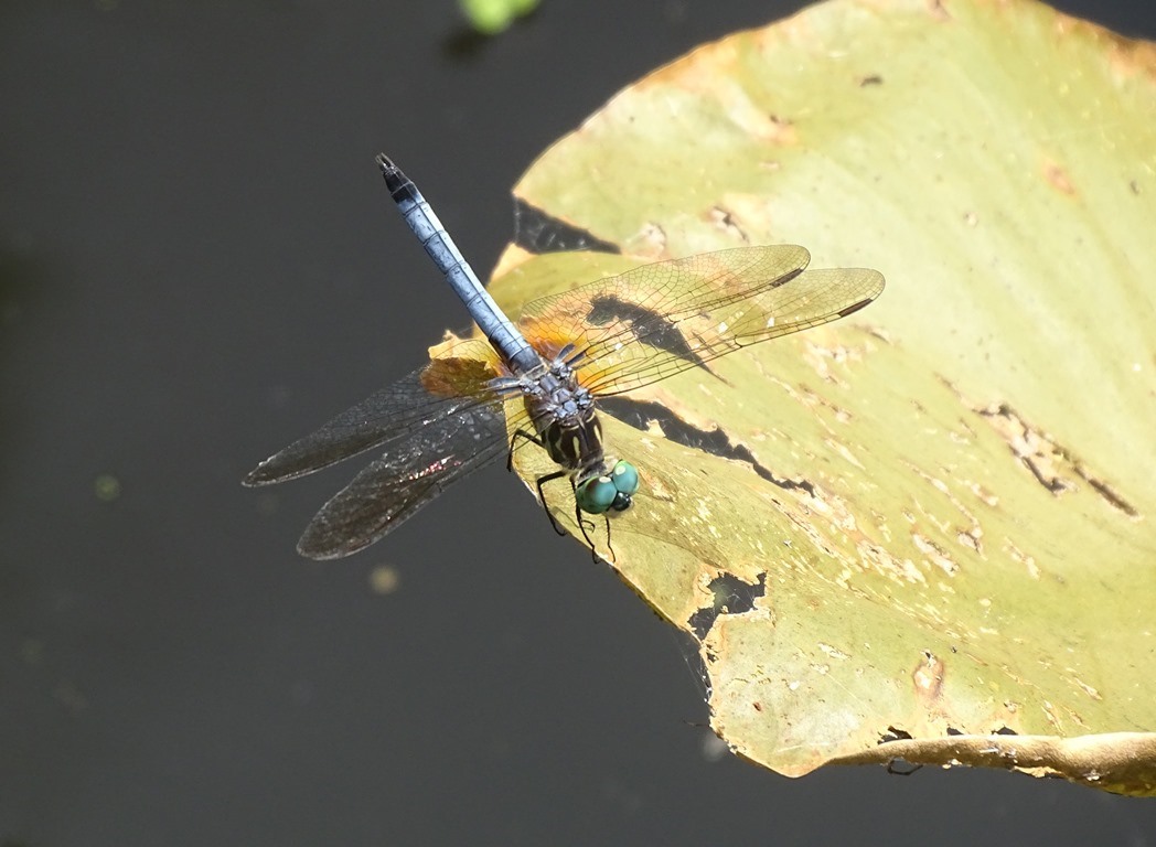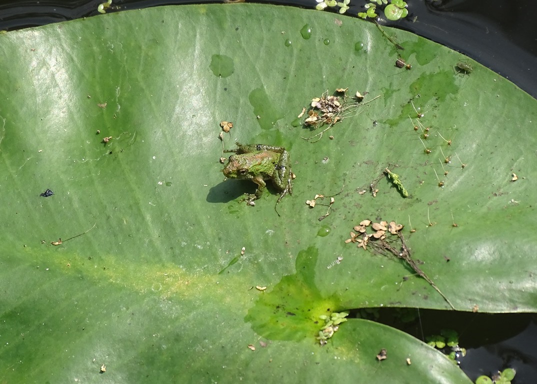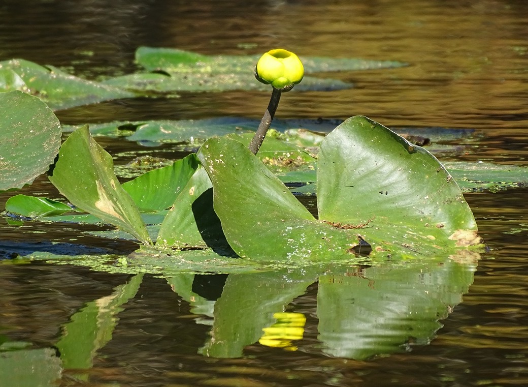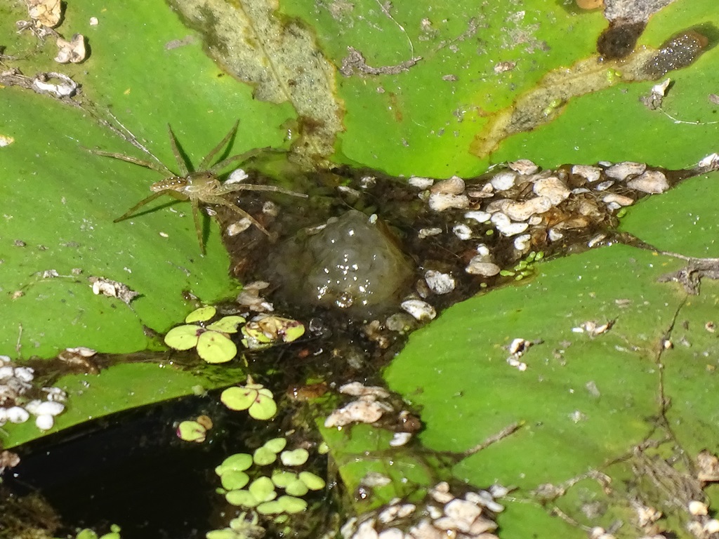 As I stood on the boardwalk gazing out at the lake, a Fishing spider suddenly scampered across the water’s surface and came to rest on top of a lily pad. Its thin, lightweight legs covered with water-repellent hairs enabled it to move effortlessly across the water’s surface without breaking the surface tension. There it sat, waiting for some unsuspecting insect or small fish to pass by.