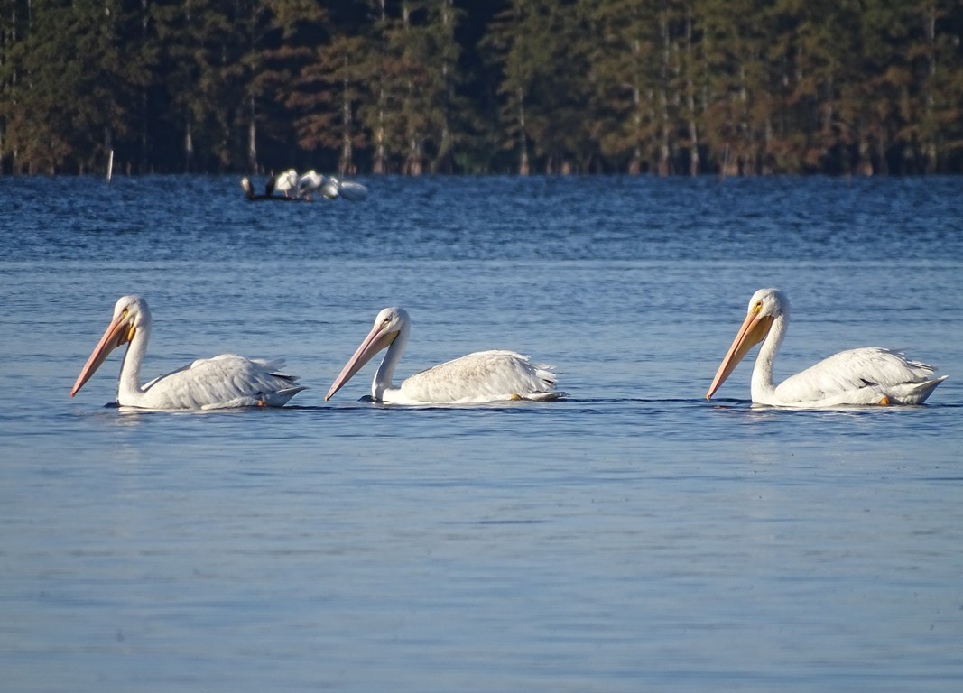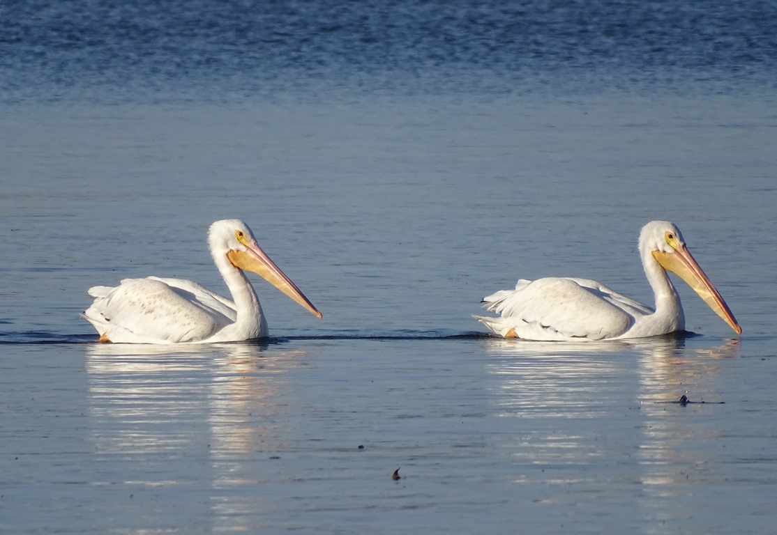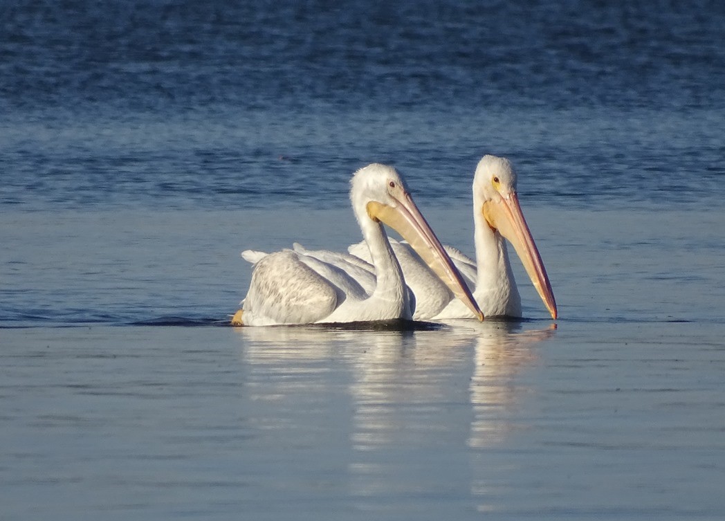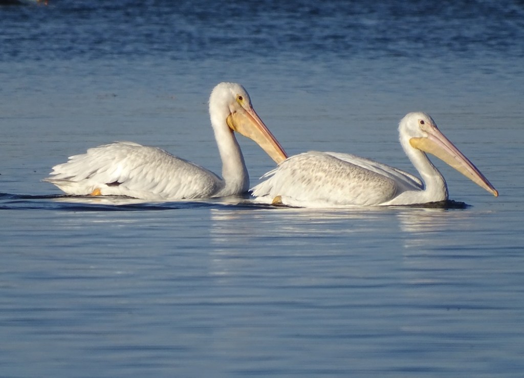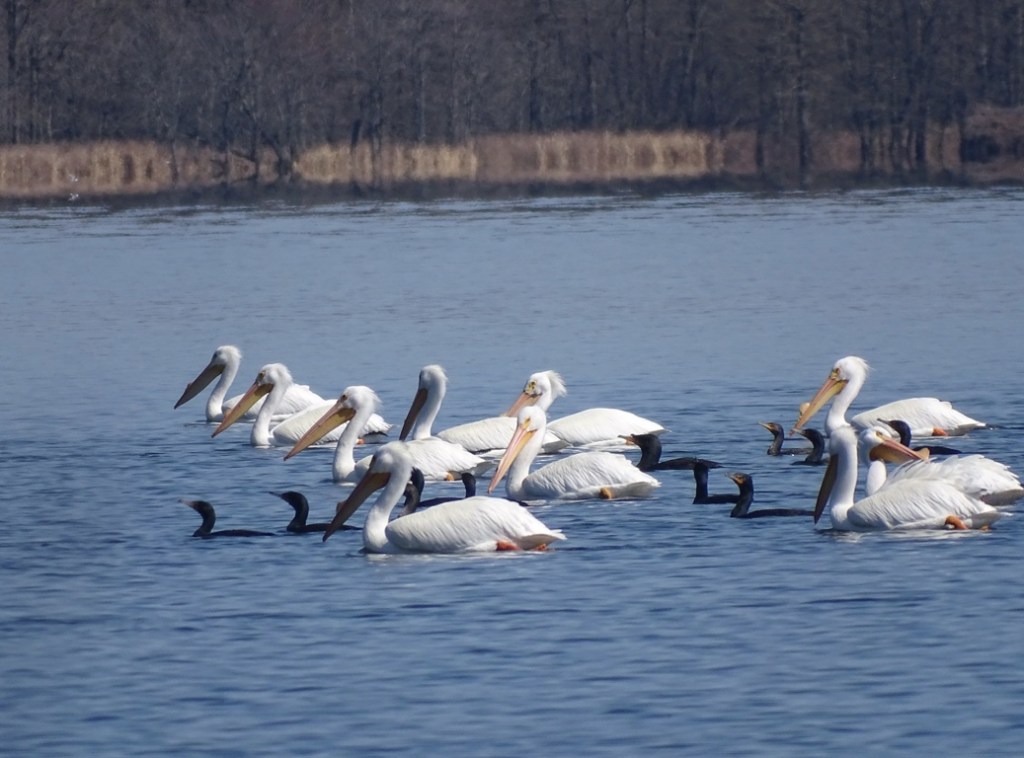 Recently, I watched a group of American white pelicans swimming alongside double-crested cormorants at the lake. This wasn’t the first time I had seen them together, which led me to wonder why these two birds, which seem to be an unlikely combination, would be hanging out.