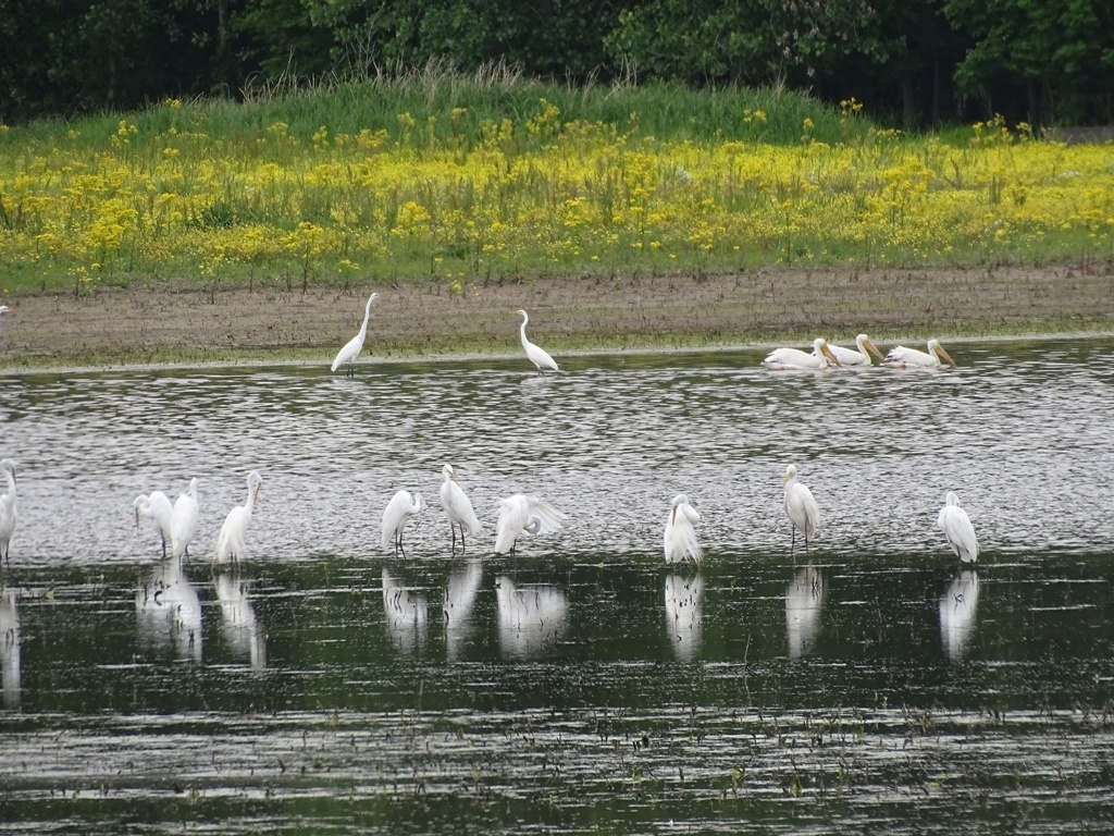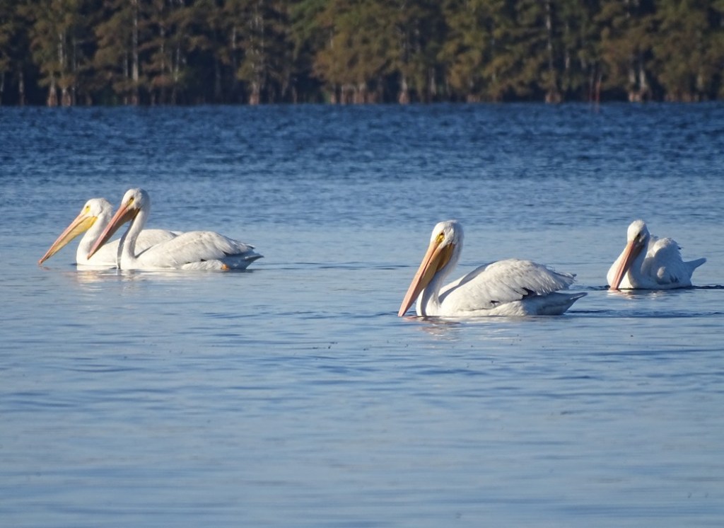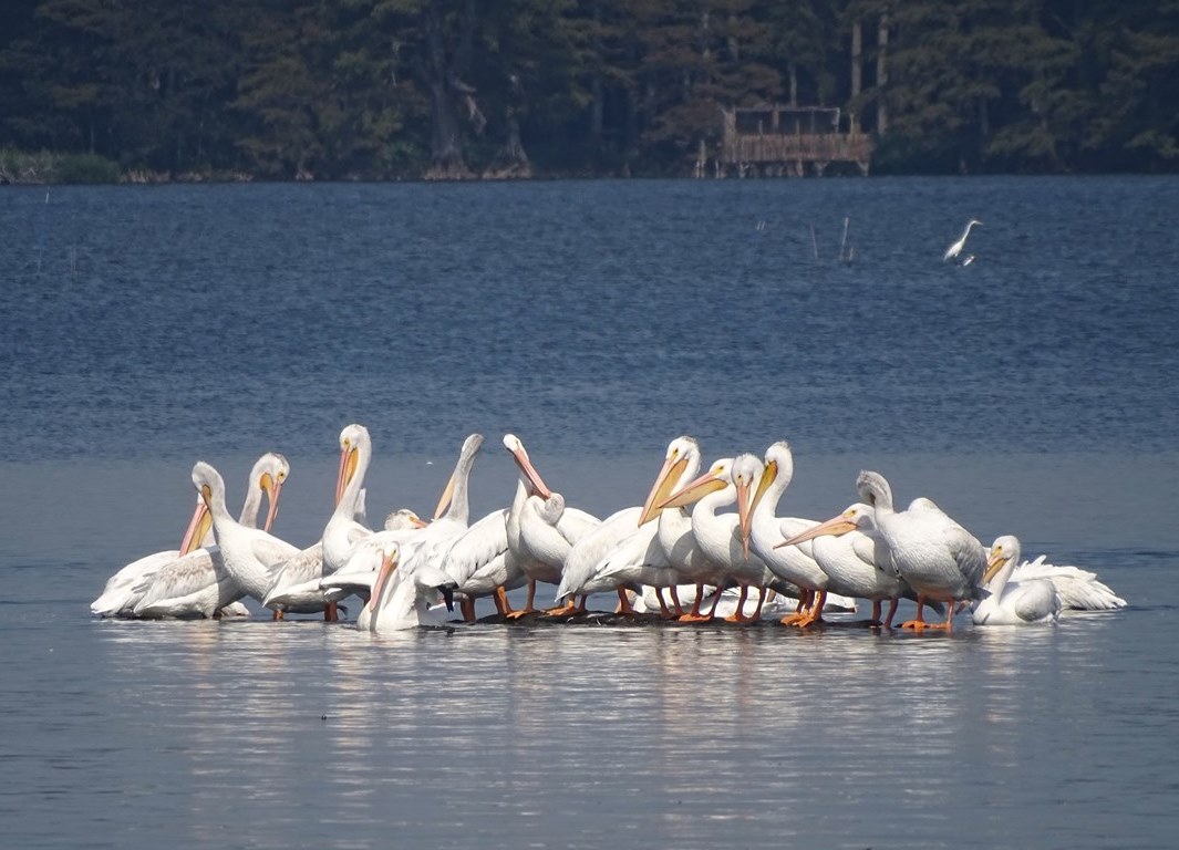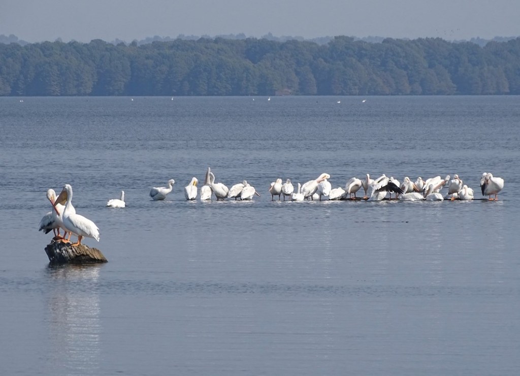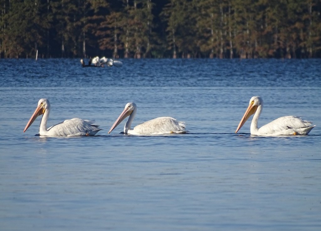 Recently, I watched a group of American white pelicans swimming alongside double-crested cormorants at the lake. This wasn’t the first time I had seen them together, which led me to wonder why these two birds, which seem to be an unlikely combination, would be hanging out.